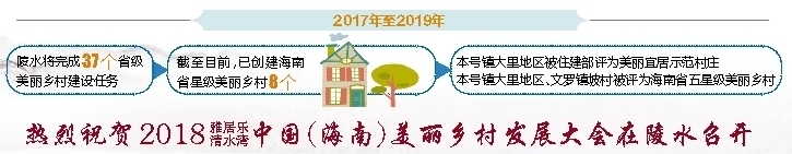 陵水住建局副局长全克江介绍,2017年至2019年,陵水将建设37个省级美丽乡村,目前已基本建设完成11个。文罗镇坡村、光坡镇米埇村、群英乡芬坡村、本号镇大里地区(小妹村、什坡村,下同)和亚欠村、三才镇港演村、英州镇赤岭村已被评为海南省星级美丽乡村。