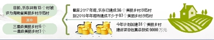 因地制宜,立足自身定位扮靓美丽乡村。截至2017年11月底,乐东已编制总体规划镇11个,编制控制性详细规划镇11个,编制行政村总规133个,编制村庄(自然村)建设规划494个,深化编制美丽乡村示范村建设规划的行政村36个,自然村109个,开展村庄风貌设计,着力体现一村一业、一村一品、一村一景。