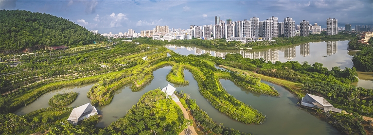 为实现人与自然和谐共生,三亚着力推进“大绿化”。全市对重要交通沿线景观带的17个废弃矿山开展生态修复,已建成公园绿地435.09万平方米,在建公园绿地169.38万平方米;收回私占公园绿地11处,建成并免费开放公园绿地37个,初步形成“一河九园”城市中心公园带,“绿色项链”串联起了两河四岸的城市美景。