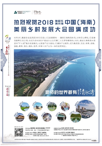 | 第004版:自贸区自贸港建设下的乡村振兴新机遇2018雅居乐清水湾中国(海南)美丽乡村发展大会特别报道 |