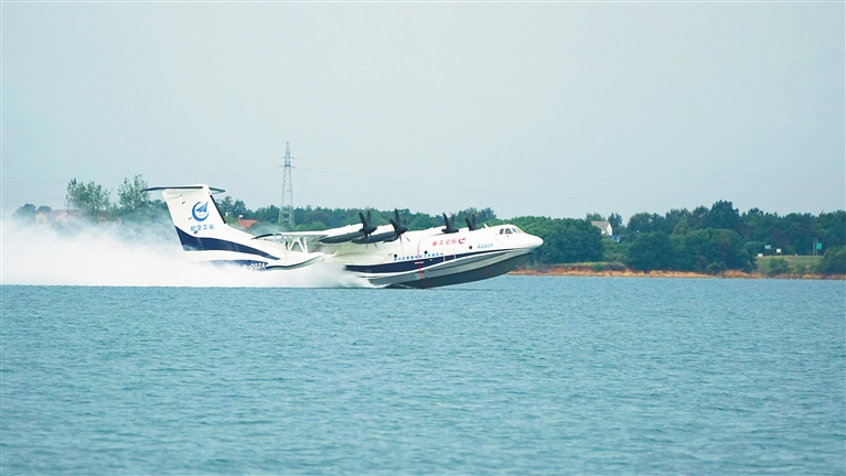 AG600完成首次水上高速滑行试验