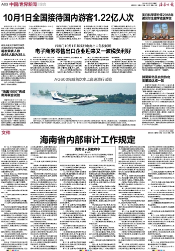 海南日报 中国/世界新闻综合 003 2018-10-021 2018年10月02日 星期二