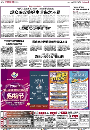 海南日报 文体新闻综合 004 2018-10-021 2018年10月02日 星期二