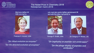 美英科学家分享2018年诺贝尔化学奖
