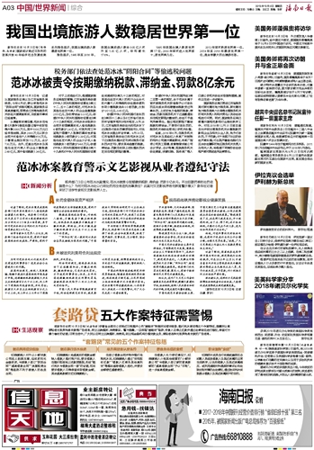 海南日报 中国/世界新闻综合 003 2018-10-041 2018年10月04日 星期四