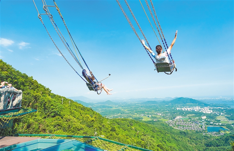 国庆黄金周第4天,呀诺达景区游客众多,不少游客都是奔着刷爆抖音平台的“网红”秋千——“悬崖观海秋千”而来,体验从高空数百米俯瞰海棠湾全景的感觉。“