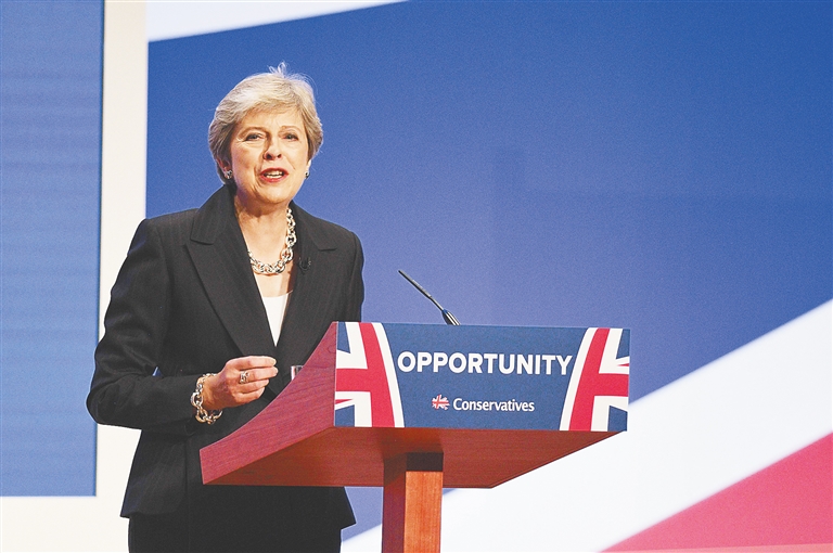 本届保守党年会前,欧盟正式否定了特雷莎·梅提出的“契克斯计划”。这份寻求在英欧之间设立“货物自由贸易区”的“脱欧”方案命运多舛,提出后即导致保守党内分裂,包括外交大臣、“脱欧”事务大臣在内的多名内阁成员因政见不合辞职,一度引来对英国政府执政能力的质疑。