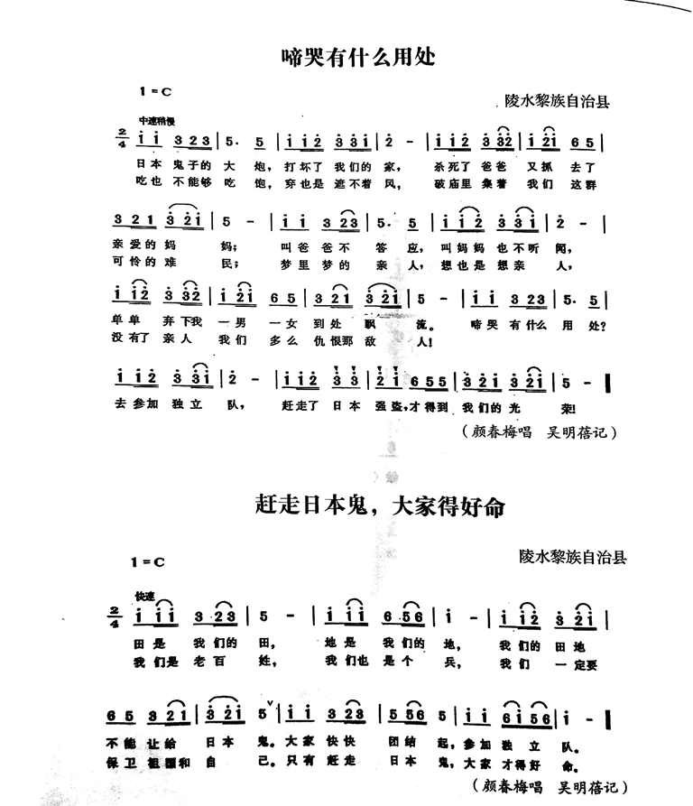 国民党巧立名目的盘剥之多难以数计,众多官衙还各自立刑法对黎、苗族人民进行奴役。《黎族人民斗争史》记载:黎族群众王开法因交不出公粮,被抓去毒打,还要罚款。他的妻子在万般无奈之下,被迫忍痛将唯一的儿子卖了,换成40块光洋交去将丈夫赎回。这首民歌深刻反映了当时黎族人民的愤怒和不解,“饲狗养兵害百姓,缴粮养兵被兵打”,国民党顽固派对养活他们的黎族群众毫无感激之情,反而穷尽敲诈勒索之能,恩将仇报。因此,黎族人民在民歌中把国民党顽固派的这种行为比作狗犬,好心养狗被狗咬,好心支援抗战,却被国民党顽固派肆意虐杀。