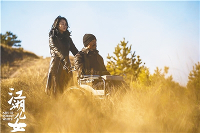 在这场旅程的起点,她还只是个享受江湖大哥宠爱的女人,任性起来连夜也要赶去两百公里外的呼市吃烧麦。但是,她又天生带着江湖人的侠气,不仅救了斌哥的命,还替他顶了重罪。她所做的这一切不仅缘于爱的本能,更缘于一个义字。所以她才在出狱之后,千里迢迢只身去寻找斌哥,这不仅是小儿女的儿女情长,更是要去找寻一个体面的说法。电影的后半部分以此而展开。