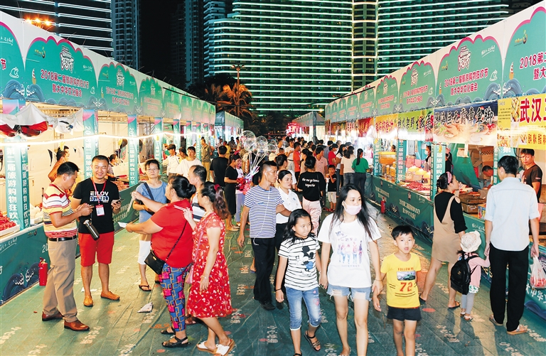 活动期间,陵水(电商)扶贫产品展销馆、陵水特色产品综合馆成为众人关注的焦点。由陵水当地电商企业、电子商务协会、优质特色产品推广协会、农民专业合作社展出的香粉蕉、百香果、三色饭、菠萝蜜、沙虫干、贵妃鸡等陵水本土特色农副产品,吸引了大量市民游客前来品尝、选购。