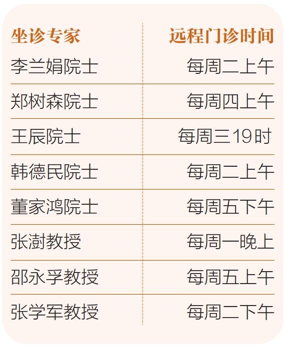 海南日报记者10月8日从博鳌超级医院获悉,本周起,该院依托高科技网络技术传输及远程视频系统,开展“院士远程门诊”。目前,已有8位院士专家确定远程门诊时间(具体安排如下表)。患者可拨打0898-96120预约。