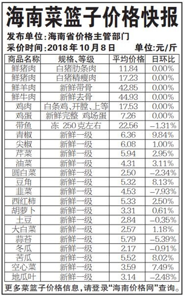 海南菜篮子价格快报