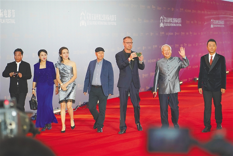 10月8日,第五届丝绸之路国际电影节在西安开幕。本届电影节共设开幕式、主宾国活动、电影展映、电影论坛、电影评审、全民电影嘉年华、闭幕式暨颁奖典礼等单元。图为评委会成员亮相开幕式红毯。新华社发