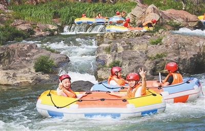 假日期间,为更好地体现游客参与性和惠民性,五指山红峡谷开展了异彩纷呈、形式各异的节庆活动,成为游客、市民嬉水玩闹的好去处。10月3日,景区不仅迎来了五指山的吉祥物“仙萌大圣”,也迎来了客流高峰,单日接待游客人数2356人。“很早以前就听说过五指山、听说过红峡谷,但因为路途较远,一直没有机会过来玩。”海南大学大三学生李泊声和同学趁着假期第一次来到五指山,享受山谷间的漂流之旅。景区新推出的“勇者之路”项目设计十个关卡,每一关都给游客带来挑战的快感。