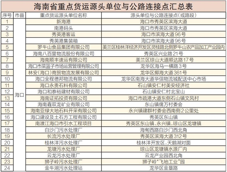 据了解,截至8月底,我省16个市县已根据省治超办及省安委办的要求陆续公布货物装载源头点202个。其中,海口市公示了24个货物装载源头点,其中有石料场、砂场、物流点、运转站等。保亭、白沙、乐东未按规定公示源头单位。