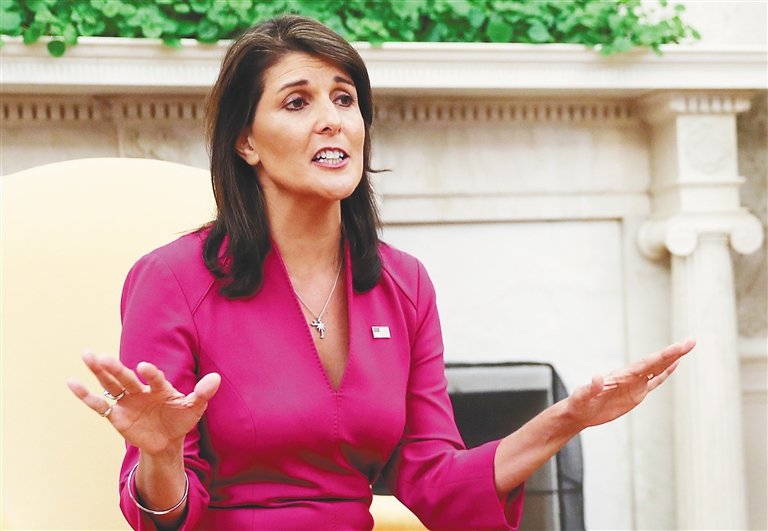 按照《华盛顿邮报》的说法,黑莉走后,特朗普政府外交政策是否会更加“好斗、单边”有不确定性。一些人担忧,一旦常驻联合国代表一职重归博尔顿式强硬派之手,美国与联合国关系恐将更趋恶化。