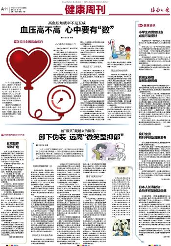海南日报 健康周刊 011 2018-10-111 2018年10月11日 星期四