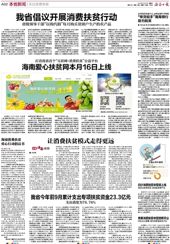 海南日报 本省新闻关注消费扶贫 002 2018-10-111 2018年10月11日 星期四