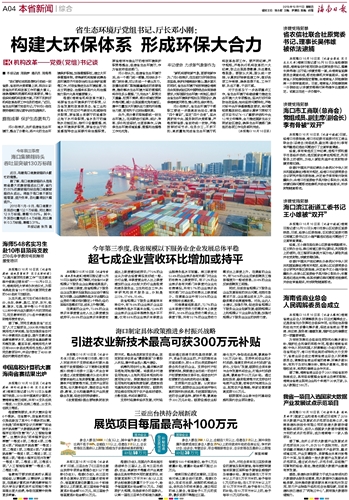 海南日报 本省新闻综合 004 2018-10-111 2018年10月11日 星期四