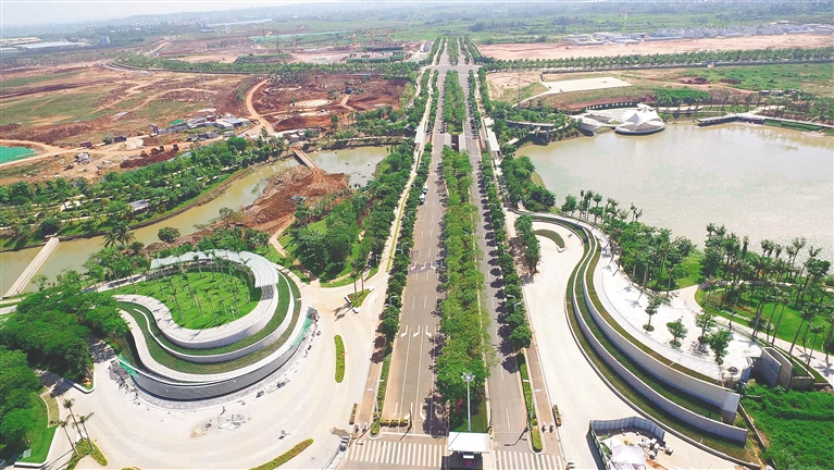 目前,海南生态智慧新城起步区正在进行一次性基础设施、一次性景观绿化建设。