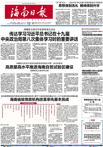 海南日报 头版 001 2018-10-121 2018年10月12日 星期五