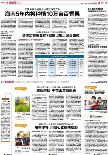海南日报 本省新闻综合 005 2018-10-131 2018年10月13日 星期六
