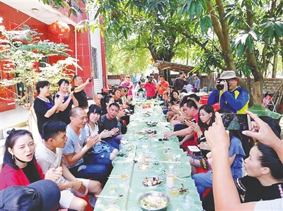 “‘牛节’,有钱没钱,家家都会相庆,有钱的多备些好菜,没钱的起码也要杀只鸡,到河里捉几条鱼。”玉龙村符师保说。黎家人好客,客人前来参加节日,并不需要特别准备什么,不过,这两年兴起了带鞭炮的风俗。