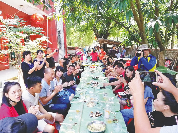 村民符其文说,他凌晨5时就起床了,忙着杀猪。东方烤乳猪出名,村民大多也都养这种小猪,“牛节”的这一天,家家户户的餐桌上都会用这道乳猪菜待客,只是不是烤出来吃,是用大锅煮出来吃的。符其文在八所打工的女儿符玉章也赶回来家中过节。“过‘牛节’,只有一天,但是比春节还隆重。这一天,朋友尽情欢聚,畅聊一天。”符其文说,家家户户都会很开心地准备着。