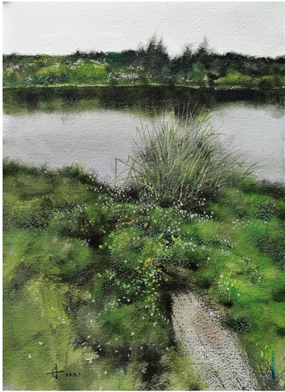 “随着科技进步,新的绘画材料产生,随着观念的更新,题材和技法的扩宽,20世纪水彩画已不再局限于透明及不透明两大范畴,能用水稀释作画的材料如水彩铅笔、透明水彩液、压克力等都属于水彩画的领域。”画家丁孟芳认为,当代水彩画具有通透明澈、淋漓酣畅、华润洒脱的意趣,它善于汲取各类画种的技法和多种形式,也可以达到浑厚深邃、古朴斑斓等扣人心弦的境界。
