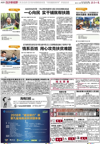 | 海南日报 关注白沙2018年度脱贫攻坚“寻找最美系列”评选活动 009 2018-10-151 2018年10月15日 星期一 |