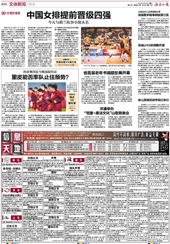 海南日报 文体新闻综合 011 2018-10-161 2018年10月16日 星期二