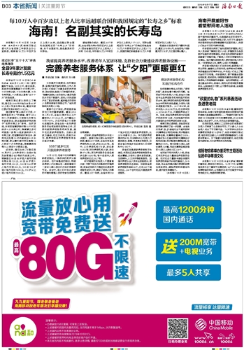 海南日报 本省新闻关注重阳节 015 2018-10-171 2018年10月17日 星期三
