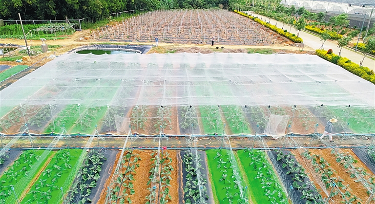 经过两年多时间,中国热科院热带生物技术研究所博士高建明带领的团队研发出了新型简易尼龙防虫网。该网每亩造价2500元左右,使用该网种植叶菜瓜果,在不打药的情况下,比不使用防虫网平均增产50%左右,蔬菜没有虫眼,卖相好。本报记者 苏晓杰 通讯员 田婉莹 摄