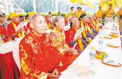 当天,长寿老人们还参加了“百叟宴”,其乐融融围坐一堂,互祝节日快乐,寿星们笑如孩童,现场气氛十分温馨。
