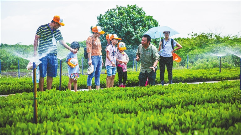 湿地资源的保护与合理利用,也激活了海口市乡村湿地旅游市场。海口美兰区三江镇的“鹤舞九湖”,就是湿地文化与农耕文化相结合的乡村生态旅游片区,每年吸引近5万游人到此旅游观光;秀英区永兴镇的“冯塘绿园”,是一个集羊山湿地、生态农业、民俗文化、创意产业等多元素融合的乡村生态旅游区,每年给每户村民带来2万多元收入。