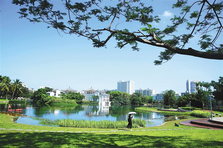 今年“十一”黄金周,海口天蓝地绿,椰树摇曳,美舍河凤翔湿地公园、五源河湿地公园、潭丰洋湿地公园等各大湿地风景宜人,不少游客趁着假期来到湿地呼吸清新空气,欣赏城市更新后的海口生态美景。