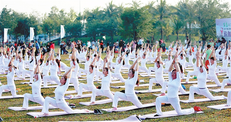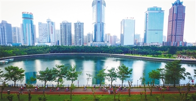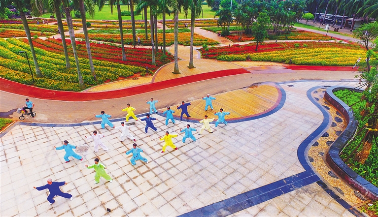 在被称为“海口绿肺”的万绿园里,恋人们牵手徜徉于习习微风中;白鹭翩翩的美舍河凤翔湿地公园里,孩子们攥着一根根风筝线在草地上尽情撒欢;小区门口的街心小游园里,三五成群的老人在各类健身器材上舒展着筋骨……