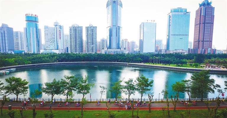 随着软硬件设施的不断完善,越来越多的城市空间被腾作休闲娱乐场所,一条条骑行绿道将海景、江景与公园绿地串联,让海口市民在家门口也能尽情休闲放松。