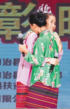 黎大雄是陵水本号镇长埇村人,一家人2014年被列为建档立卡贫困户。过去,一家4口人的生活来源全靠他一人劳作赚得,家庭年均收入仅几千元,加上两个孩子读大学,日子过得很艰难。“多亏了国家的扶贫政策,帮扶干部帮助我发展产业,如今我一边种圣女果一边养猪,儿子和女儿也大学毕业参加工作了,全家日子过得很舒坦哩!” 舞台灯光照耀下,黎大雄用朴实的语言向党和政府表达感恩之情。