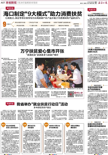 | 海口制定“9大模式”助力消费扶贫 | |