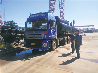 10月11日晚上8时许,有海口市民举报,在海口长流镇海力路上有10多辆装载钢材的大货车涉嫌超限超载。接到举报后,海口市交通港航综合执法支队立刻派出辖区秀英大队治超中队执法人员赶往现场,并通知海口交警到现场共同执法。