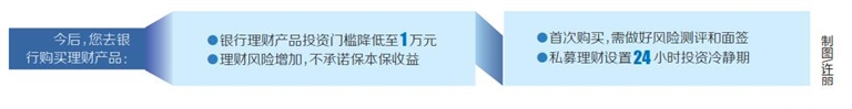 “最直接的影响就是投资门槛变低,但是风险会有所增加。”恒天财富海南分公司理财规划师叶艳芬表示,理财新规与普通百姓的理财息息相关,譬如之前理财门槛是5万元起,现在1万元起,更多的老百姓可以选择银行理财产品进行投资,投资渠道更加多元化。