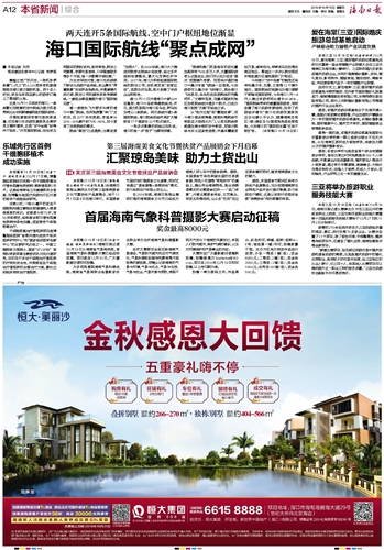 海南日报报业集团旗下媒体: 海南日报 |南国都市报 |南海网 |南岛晚报 |证券导报 |法制时报 |海南农垦报 设为首页