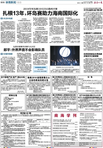 海南日报 体育新闻综合 018 2018-10-191 2018年10月19日 星期五