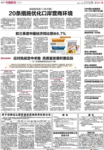 海南日报 中国新闻综合 007 2018-10-201 2018年10月20日 星期六
