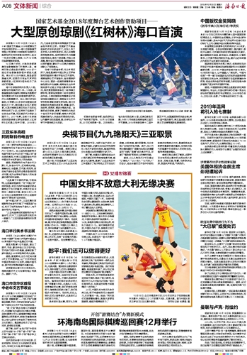 海南日报 文体新闻综合 008 2018-10-201 2018年10月20日 星期六