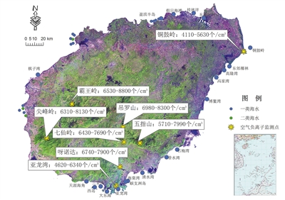 全省主要森林旅游区空气质量优良。霸王岭国家森林公园、尖峰岭国家森林公园、五指山国家级自然保护区、七仙岭温泉国家森林公园、铜鼓岭国家级自然保护区、亚龙湾热带天堂公园、吊罗山国家森林公园、呀诺达雨林文化旅游区8个主要森林旅游区空气负离子平均浓度分别为7370个/立方厘米、7080个/立方厘米、6970个/立方厘米、6970个/立方厘米、4830个/立方厘米、5515个/立方厘米、7730个/立方厘米、7350个/立方厘米,远超过世界卫生组织规定清新空气1000~1500个/立方厘米的标准,对人体健康极有利。与去年同期比较,霸王岭国家森林公园、尖峰岭国家森林公园、五指山国家级自然保护区等3个森林旅游区空气负离子浓度有所降低,其余森林旅游区空气负离子浓度无明显变化。