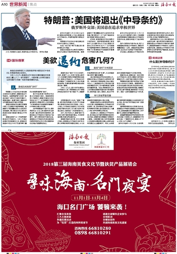 | 海南日报 世界新闻焦点 010 2018-10-221 2018年10月22日 星期一 |
