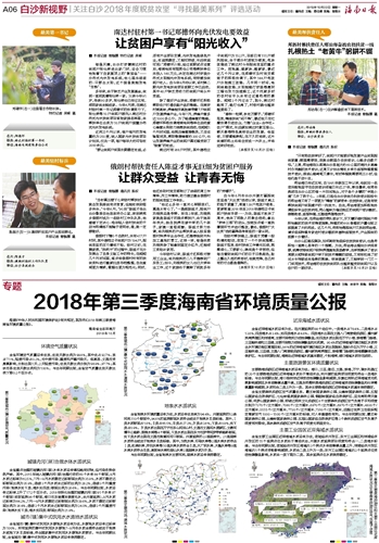 | 海南日报 关注白沙2018年度脱贫攻坚“寻找最美系列”评选活动 006 2018-10-221 2018年10月22日 星期一 |