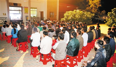 村委会会议室里座无虚席,放下锄头的农民重返“课堂”,聚精会神对着电视边听边记、边学边思……每逢周一晚上,“乡土课堂”在海南各地村庄同时上演。